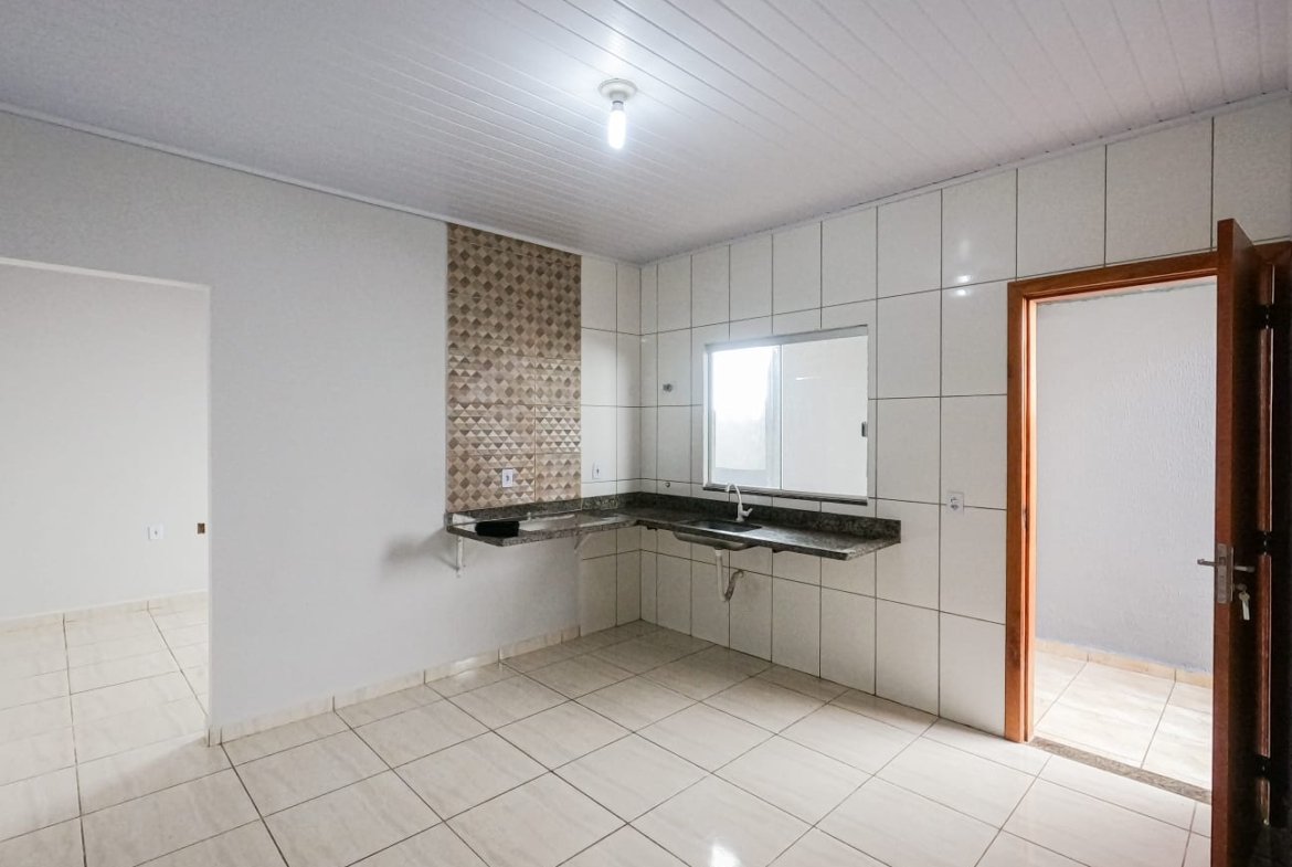 Casa para ALUGAR com 2 quartos, sala, cozinha, lavanderia, forrada, parte interna toda em cerâmica e externa toda cimentada, possui garagem para 2 carro.