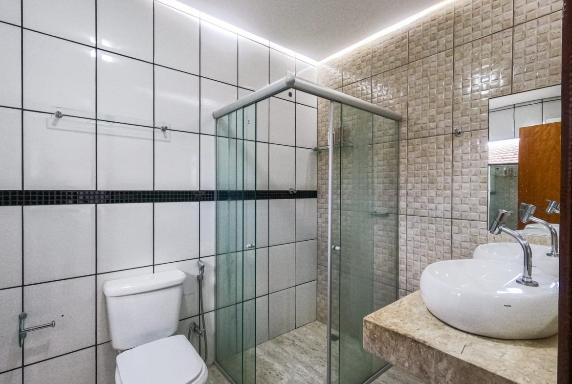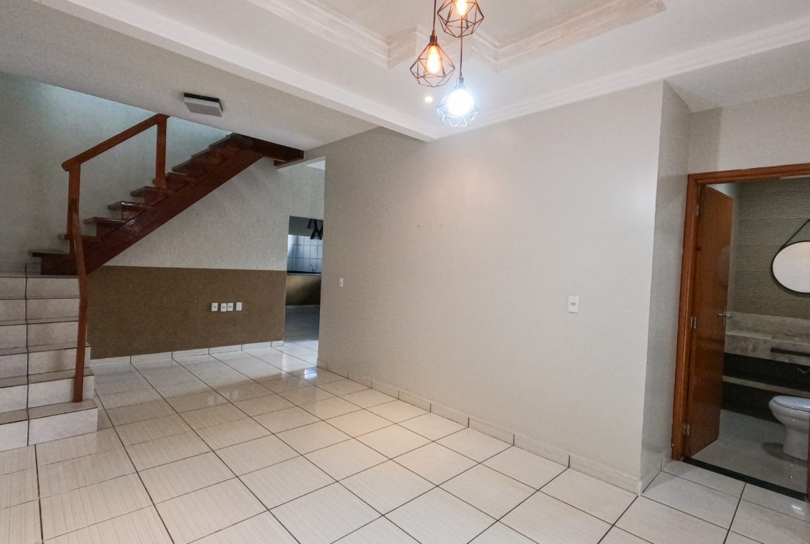 🔹 Outros diferenciais: sobrado com dois quartos na parte superior (sendo uma suíte), banheiro social e sacada com vista para a avenida; na parte inferior possui suíte com closet, lavabo na sala, cozinha espaçosa com armários, lavanderia, piso em cerâmica e quintal na frente. Localização privilegiada próxima a supermercado e comércios.